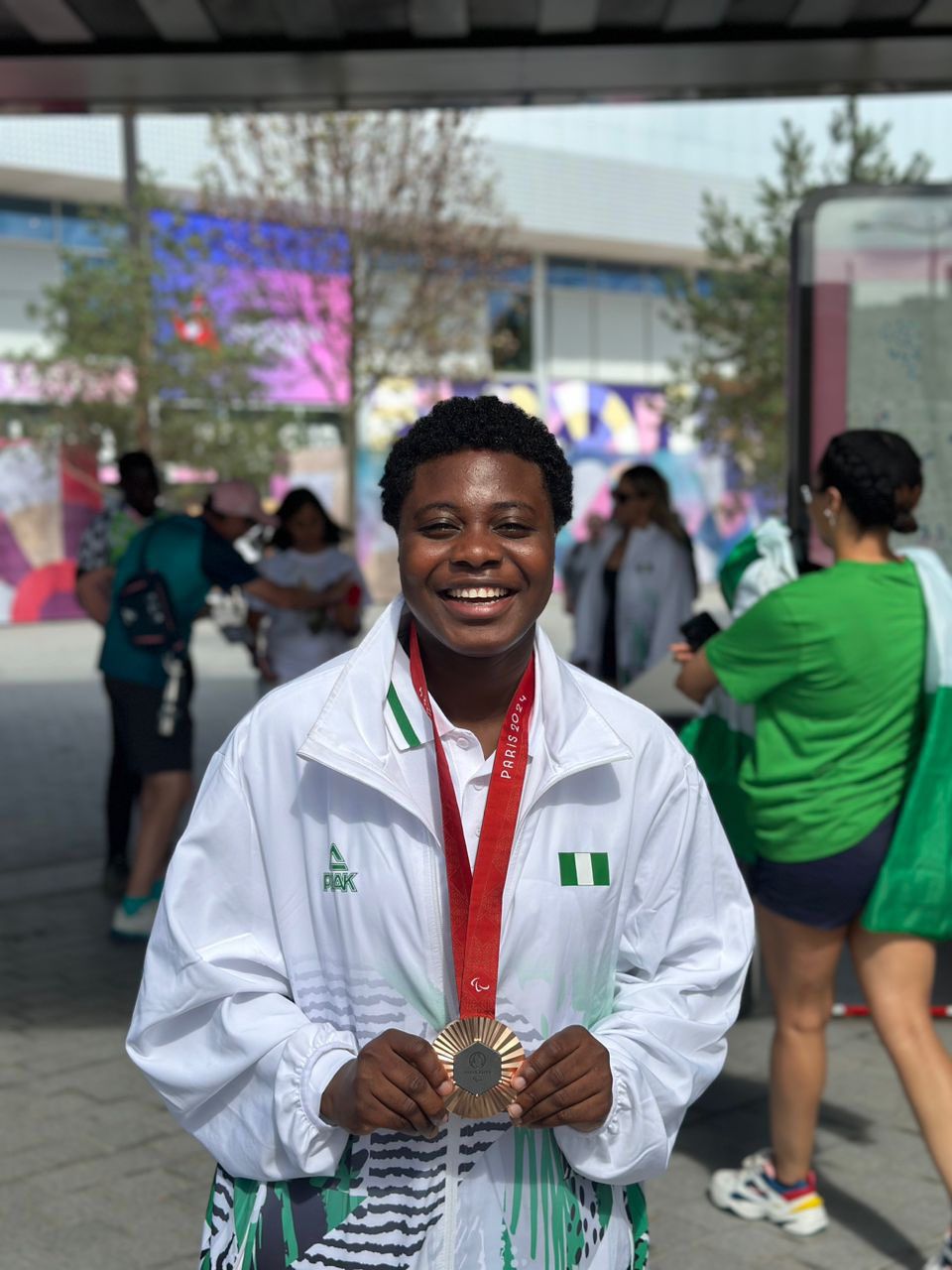 President Bola Tinubu congratulates Ms. Eniola Mariam Bolaji on winning a medal in badminton at the Paris 2024 Paralympics, becoming the first African athlete to achieve such a feat in the sport at the Games.
