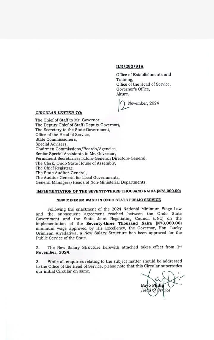 This development signals the commencement of full implementation of the new wage law effective from the 1st of November, 2024.