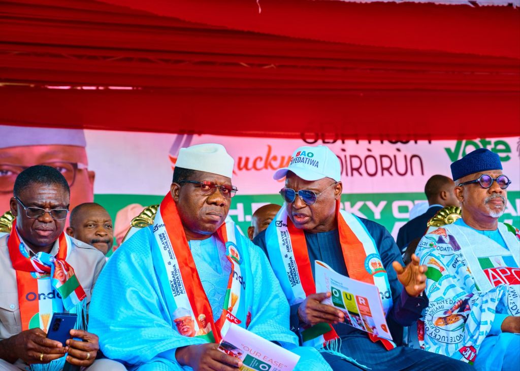 APC National Chairman, Abdullahi Umar Ganduje, reiterated the party’s commitment to a sweeping victory in Ondo, promising Governor Aiyedatiwa the party’s backing to deliver all 18 local government areas.