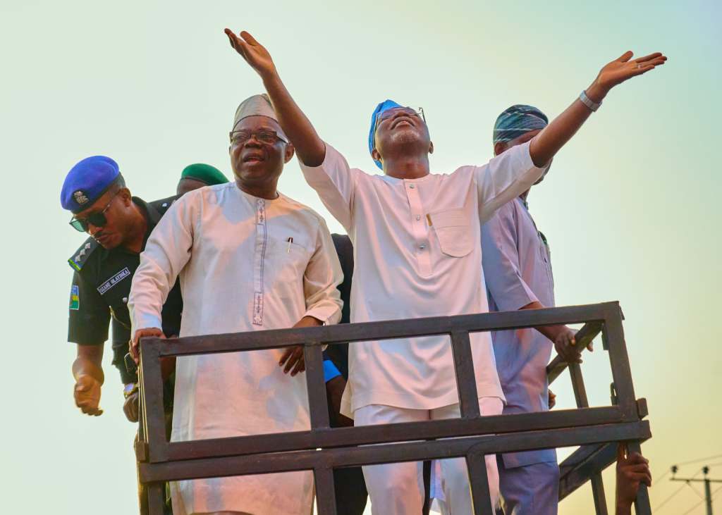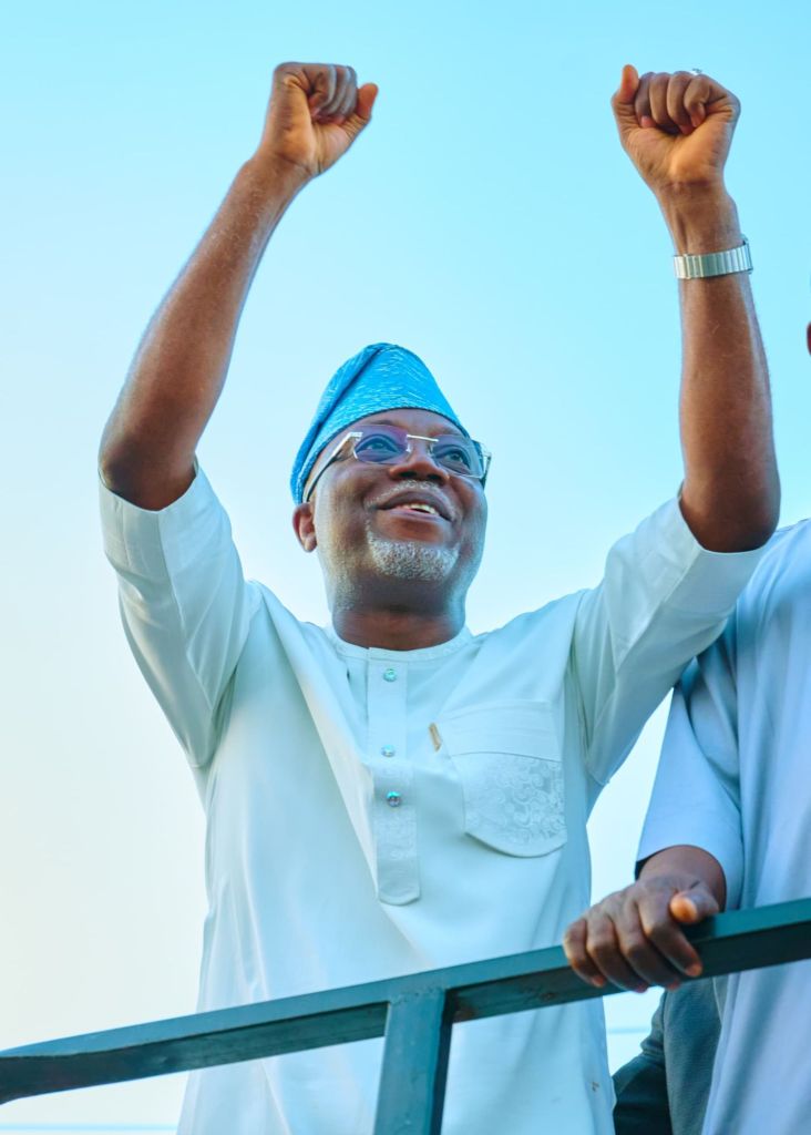 Governor Aiyedatiwa, accompanied by his deputy, Dr. Olayide Adelami, and a crowd of supporters, traversed major streets in the state capital, acknowledging cheers from residents who turned out in large numbers to celebrate his historic victory.