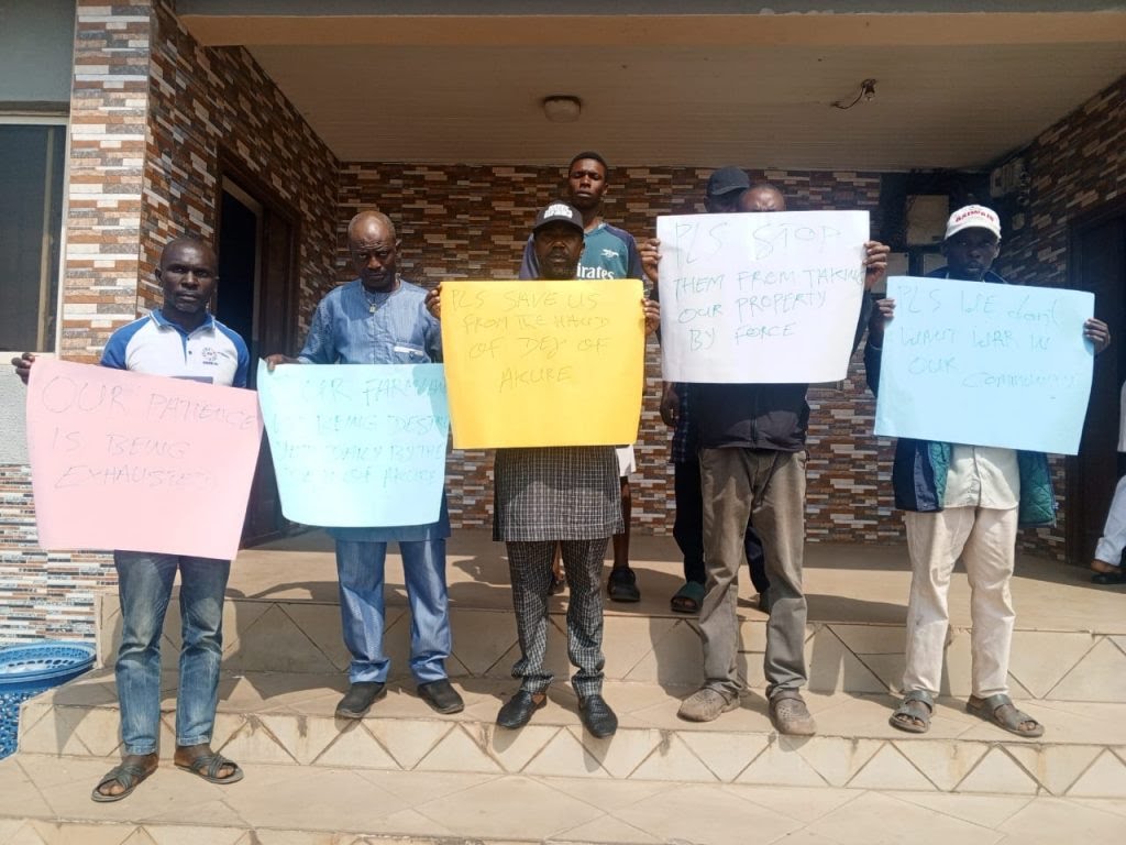 On Monday, the family staged a protest at the Governor’s Office in Akure, carrying placards with messages such as “Our patience is being exhausted”, “Deji’s men are destroying our heritage and inheritance”, “Please stop them from further destruction of our property, ” and “Governor Aiyedatiwa save our future” among others.