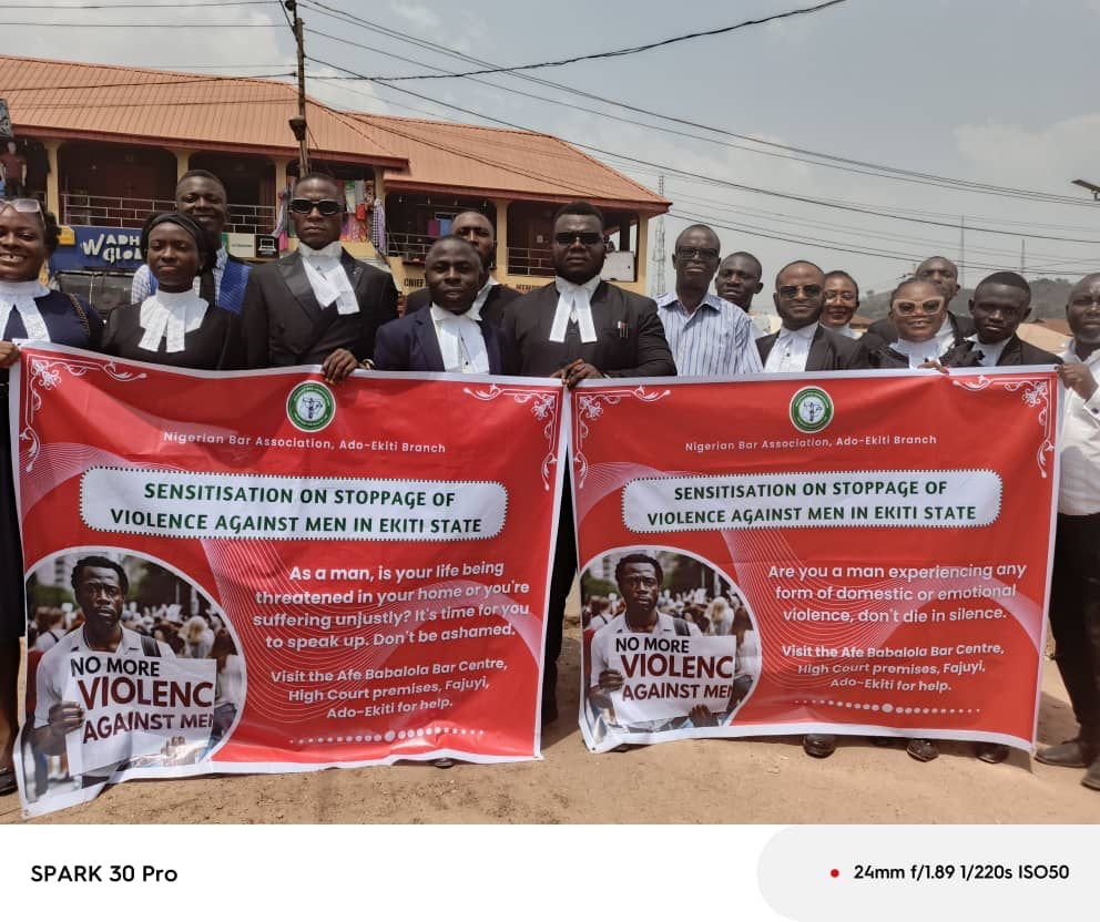 The lawyers stated this during a sensitisation walk tagged, “Stop Violence Against Men” held in Ado Ekiti as part of activities marking its fourteen days activism on violence against men.