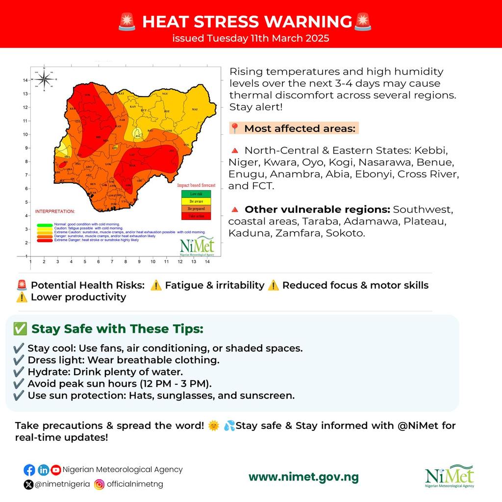 🌞 💦Stay safe & Stay informed with @NiMet for real-time updates! #HeatAlert #StayHydrated #StayCool #HeatStress #NigeriaWeather