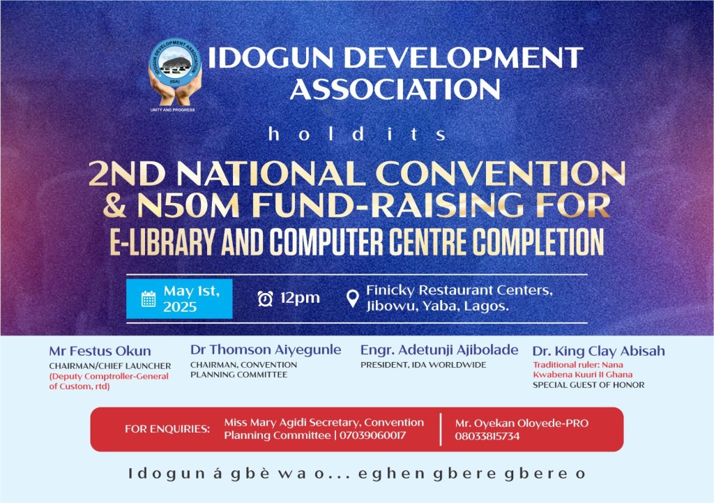 Preparations are in top gear for the second edition of the National Convention of the Idogun Development Association (IDA), alongside a N50 million fundraising event aimed at completing the e-library project in Idogun Community, Ose Local Government Area of Ondo State.