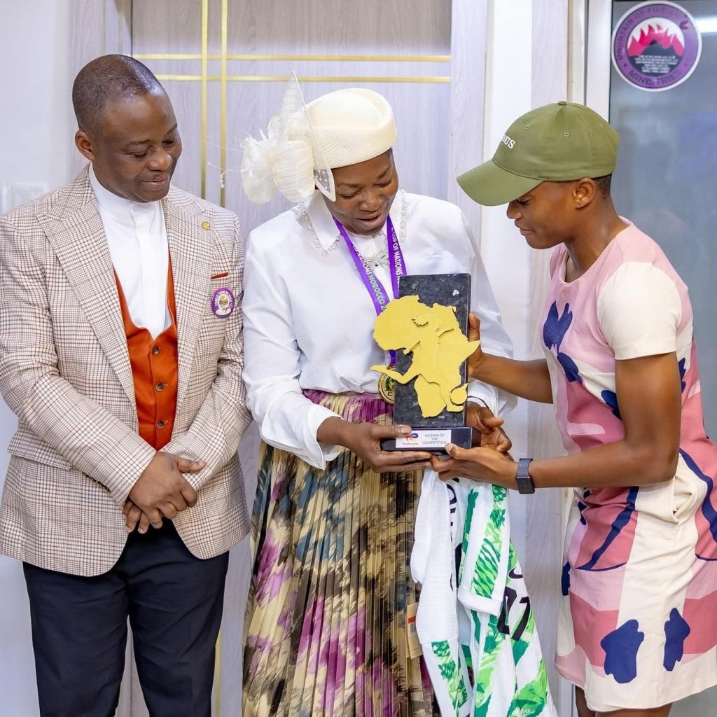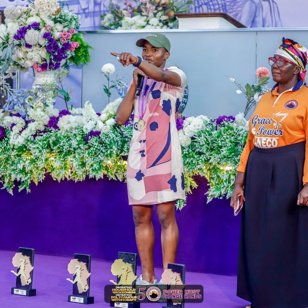Presenting her trophies to the General Overseer of the church, Prof. D.K. Olukoya during the monthly Power Must Change Hands programme of the MFM, Ajibade celebrated her mother’s efforts to raise her, while also appreciating Olukoya for his fatherly support, spiritually.