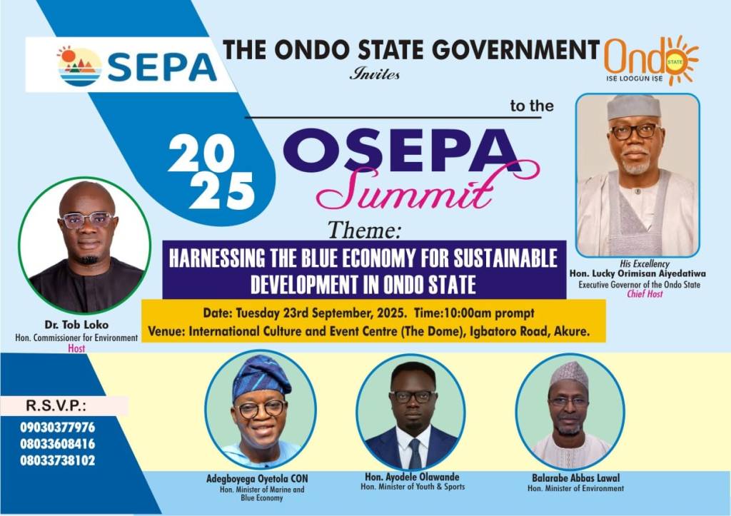 The Ondo State Government has launched a comprehensive Blue Economy Agenda designed to harness marine and aquatic resources for sustainable growth. The initiative was unveiled during the 2025 Environmental Protection Agency (OSEPA) Summit, held at the International Culture and Event Centre (The Dome), Akure.