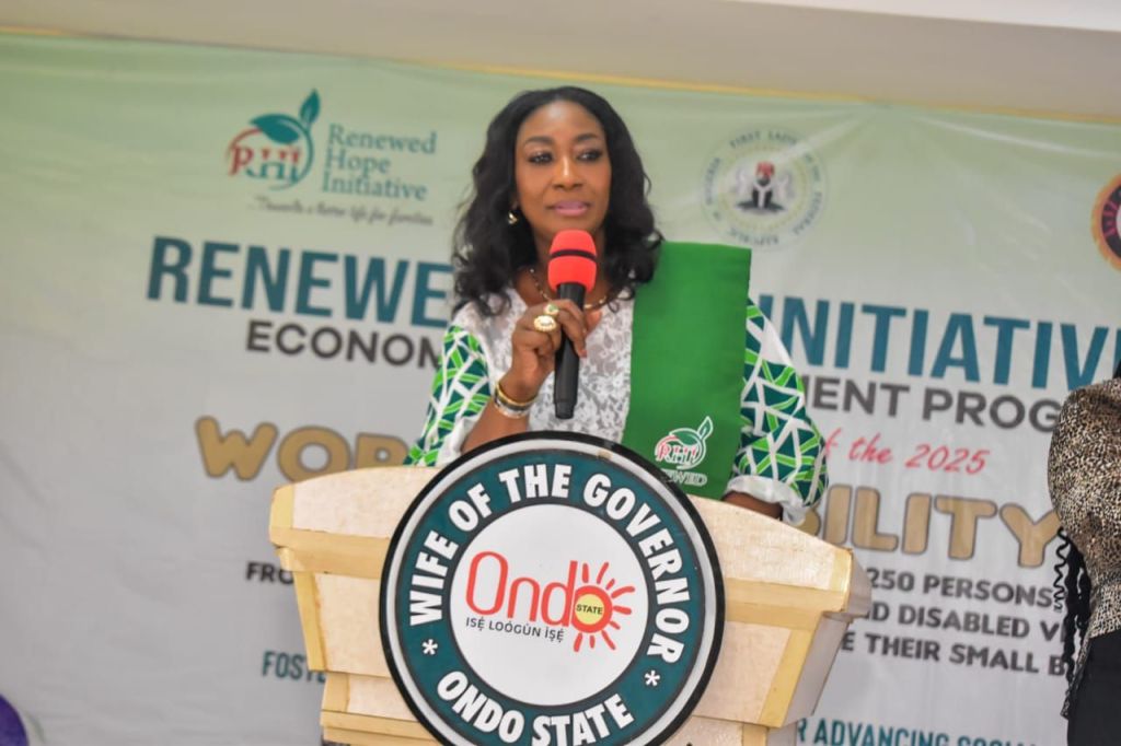 The First Lady of the Federal Republic of Nigeria, Senator Oluremi Tinubu has empowered 250 persons living with disabilities in Ondo State with N200,000 each through the Renewed Hope Initiative (RHI) empowerment programme.