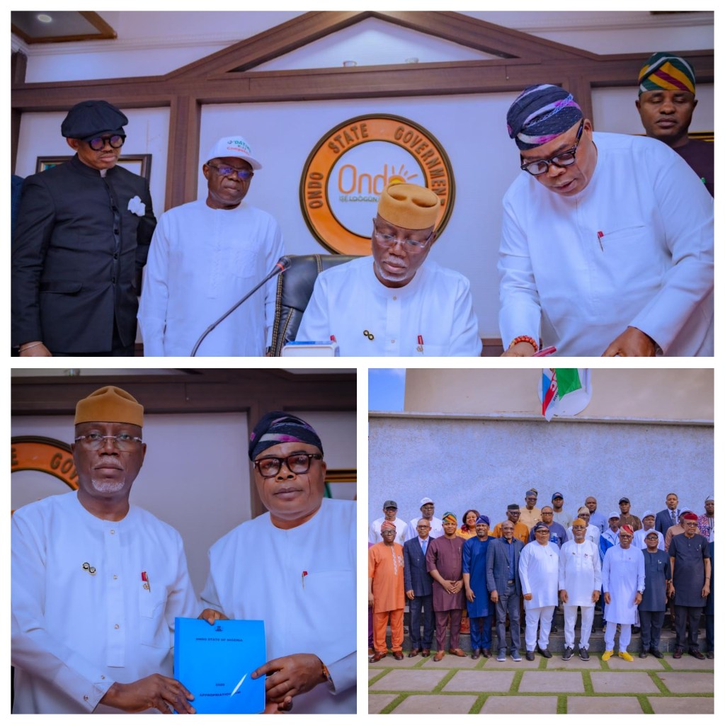 Presenting the budget to the governor, Speaker of the Ondo State House of Assembly, Rt. Hon. Olamide Oladiji, commended Governor Aiyedatiwa for transforming the state and giving Akure a capital-like appearance.